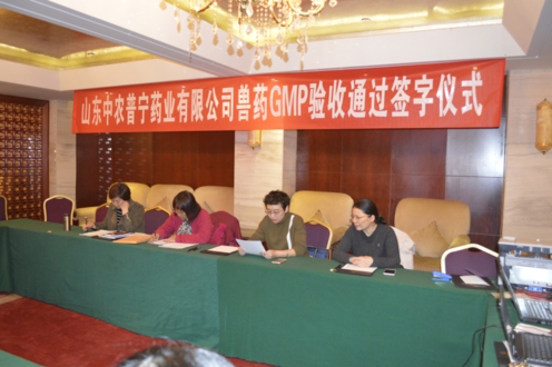3月24日--25日,山東省畜牧局藥政處于春英副處長、省畜牧局獸藥殘留科陳玲科長為組長、濟寧所楊春曉科長一行3人的獸藥GMP驗收小組蒞臨我公司,在市畜牧局李華副局長、邢智慧科長、于宏科長、高新區(qū)農工辦楊主任的陪同下對我公司進行了為期2天的獸藥GMP驗收。首先專家組認真聽取了公司總經(jīng)理康魯風先生對公司生產(chǎn)概況、組織機構、人員培訓、廠房布局建設、設施配備、衛(wèi)生、原輔料、生產(chǎn)管理、驗證管理、質量管理、產(chǎn)品銷售與收回、自檢、產(chǎn)品介紹等多個方面進行了匯報。